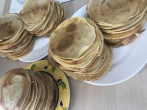 Pour 16 heures, nous avions décidé de faire une « crêpes party » avec toutes les préparations réalisées le matin-même.