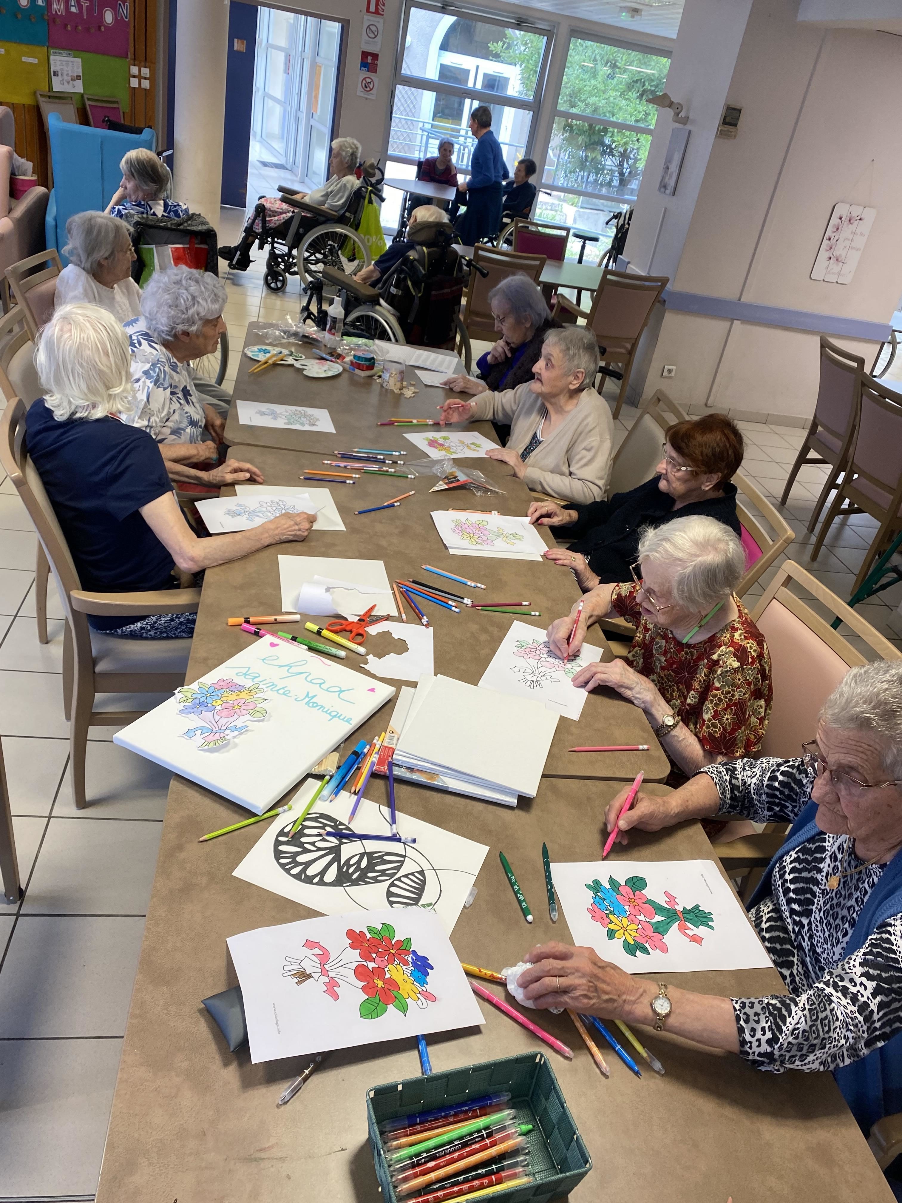 Nous avons choisi de réaliser aujourd’hui des tableaux décoratifs à personnaliser par nos résidents.
