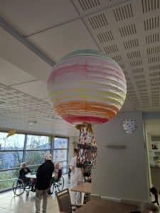 La salle de vie s’est parée de superbes montgolfières, pour le plus grand bonheur des résidents, de leurs familles et du personnel de la maison.